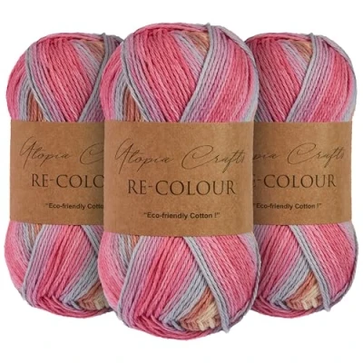 Utopia Crafts Re Colour Ombre Knitting & Crochet Yarn 3X 100g (Spring Blossom)
