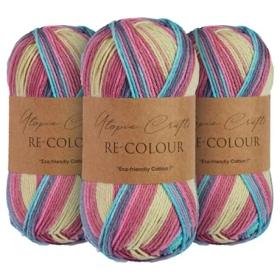 Utopia Crafts Re Colour Ombre Knitting & Crochet Yarn 3X 100g (Tropical Mix)