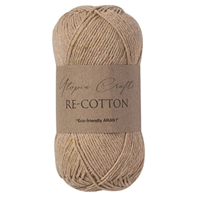 Utopia Crafts Re Cotton Knitting Yarn, 100g (Light Taupe) (Pack of 2)