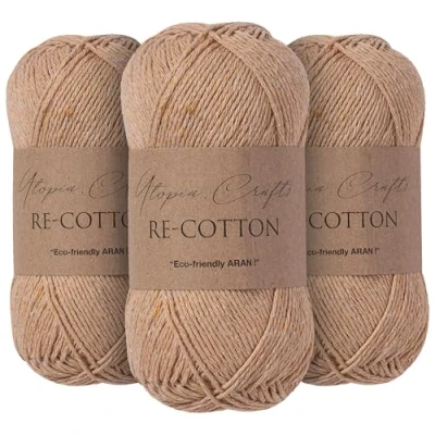 Utopia Crafts Re Cotton Knitting Yarn 3X 100g (Light Taupe)