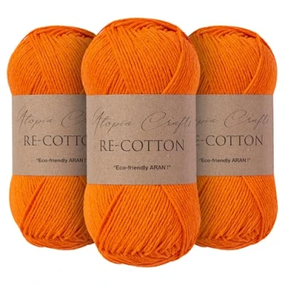 Utopia Crafts Re Cotton Knitting Yarn 3X 100g (Pumpkin Orange)