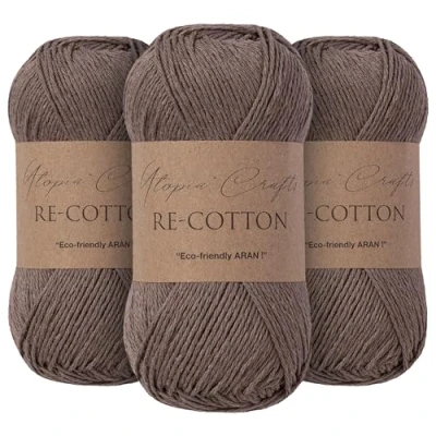 Utopia Crafts Re Cotton Knitting Yarn 3X 100g (Roman Coffee)