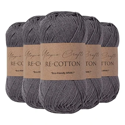 Utopia Crafts Re Cotton Knitting Yarn, 100g (Storm Grey)