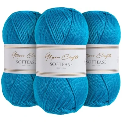 Utopia Crafts Softease Knitting and Crochet Yarn 3X 100g (Classic Blue)