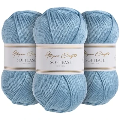 Utopia Crafts Softease Knitting and Crochet Yarn 3X 100g (Misty Blue)