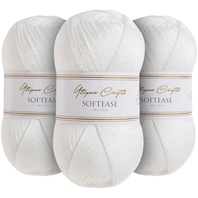 Utopia Crafts Softease Knitting and Crochet Yarn 3X 100g (White)