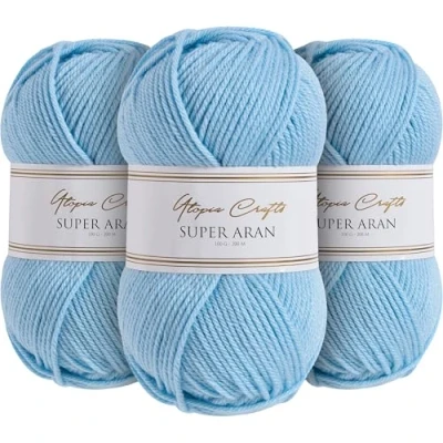 Utopia Crafts Super Aran Knitting and Crochet Yarn 3X 100g (Azure Breeze)