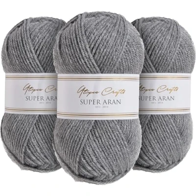 Utopia Crafts Super Aran Knitting and Crochet Yarn 3X 100g (Frost Grey)