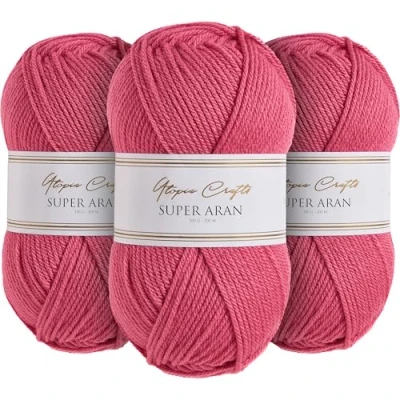 Utopia Crafts Super Aran Knitting and Crochet Yarn 3X 100g (Petal Pink)