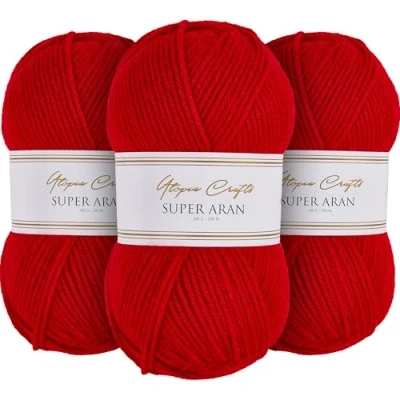 Utopia Crafts Super Aran Knitting and Crochet Yarn 3X 100g (Scarlet Glow)
