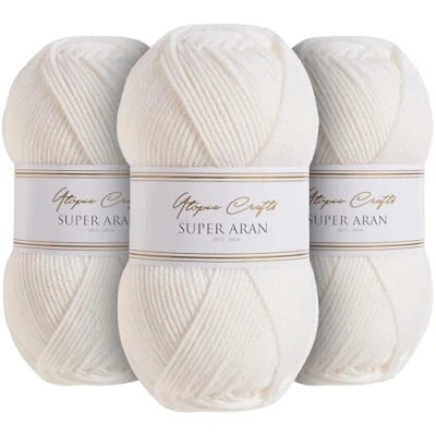 Utopia Crafts Super Aran Knitting and Crochet Yarn 3X 100g (White)