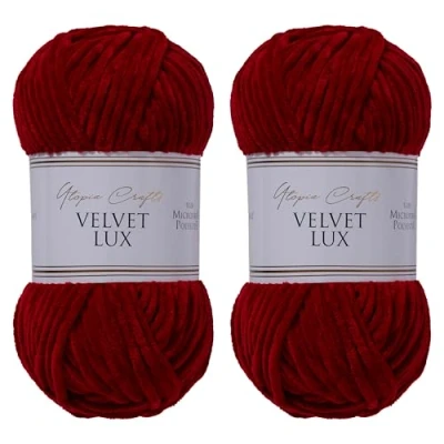 Utopia Crafts Velvet Lux Chenille Super Soft Chunky Yarn for Knitting and Crochet 2X 100g (Dark Scarlet)