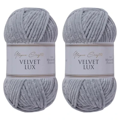 Utopia Crafts Velvet Lux Chenille Super Soft Chunky Yarn for Knitting and Crochet 2X 100g (Grey)