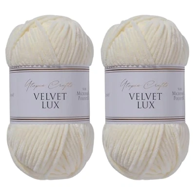 Utopia Crafts Velvet Lux Chenille Super Soft Chunky Yarn for Knitting and Crochet 2X 100g (Ivory)