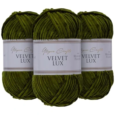 Utopia Crafts Velvet Lux Chenille Super Soft Chunky Yarn for Knitting and Crochet 3X 100g (Dark Olive)