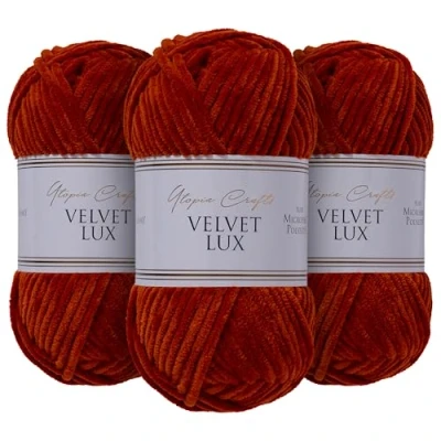Utopia Crafts Velvet Lux Chenille Super Soft Chunky Yarn for Knitting and Crochet 3X 100g (Dark Orange)