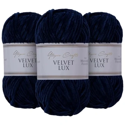 Utopia Crafts Velvet Lux Chenille Super Soft Chunky Yarn for Knitting and Crochet 3X 100g (Midnight Blue)