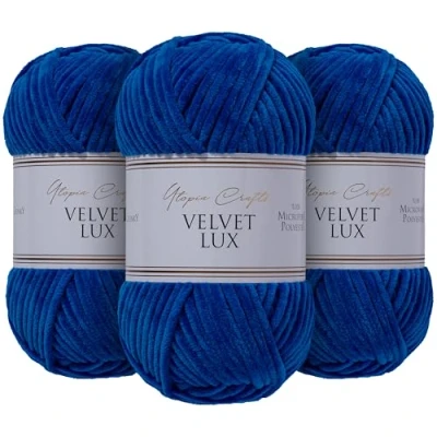 Utopia Crafts Velvet Lux Chenille Super Soft Chunky Yarn for Knitting and Crochet 3X 100g (Navy Blue)
