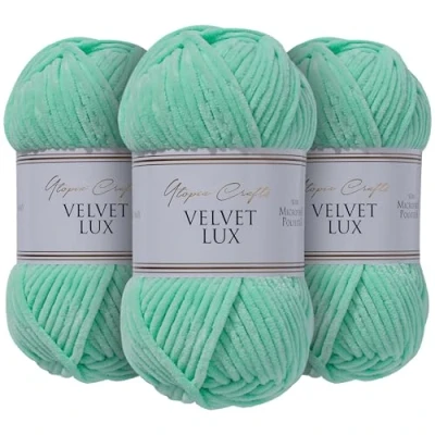 Utopia Crafts Velvet Lux Chenille Super Soft Chunky Yarn for Knitting and Crochet 3X 100g (Pale Teal)