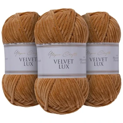 Utopia Crafts Velvet Lux Chenille Super Soft Chunky Yarn for Knitting and Crochet 3X 100g (Warm Brown)