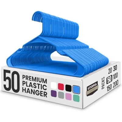 Utopia Home 50 Pack Plastic Hangers Space Saving, Durable Hanger with Shoulder Grooves, Blue