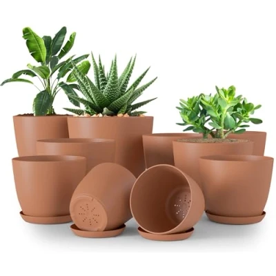 Utopia Home Plant Pots Indoor with Drainage 7/6.6/6/5.3/4.8 Inches Decor Flower for Planter Plastic Planters Plants, Cactus, Succulents Pot (Terracotta, Pack of 10)