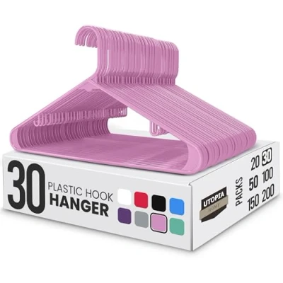 Utopia Home Plastic Hangers 30 Pack Clothes Hanger with Hooks Durable & Space Saving (Pink)