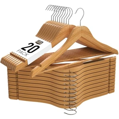 Utopia Home Premium Wooden Hangers [Pack of 20] Durable & Slim Wood 360 Degree Rotatable Hook Shoulder Grooves Non Slip Lightweight for Coats, Suits, Pant and Jackets Natural Finish