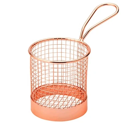 Food presentation basket Material: Stainless steel with a copper finish Shaped like a chip-fryer basket Perfect for serving chips, sides and tapas dishes Hand wash