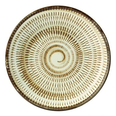 Serving plate Material: Vitrified porcelain Delicate cream finish with a spiral design Perfect for serving a variety of starters and desserts Ideal for adding variety and a rustic aesthetic to table settings and food presentation