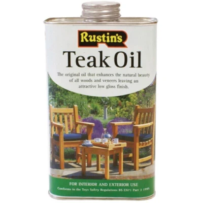 General description Rustins Teak Oil is a fast-drying, penetrating finish made from a blend of special vegetable oils and resins. It is designed to enhance and protect teak, cedar, and other hardwood surfaces, providing an attractive sheen on both interior and exterior wood surfaces. This oil is easy to apply using a brush or cloth and is suitable for various woodworking projects. Technical specifications Size: 1 litre Conforms to The Articles in Contact with Food Regulations Conforms to the Toys (Safety) Regulations 1995, BS EN 71 Part 3 Manufacturer Part Number: TEAK1000 EAN: 5015332520039 Compatibility and accessories Suitable for teak, cedar, and all bare hardwoods Installation Ensure the surface is clean, dry, and free of dust before application Apply a thin, even coat with a brush or cloth Allow to dry thoroughly before applying additional coats if needed Usage Use on interior and exterior wood surfaces to enhance appearance and provide protection Apply in well-ventilated areas
