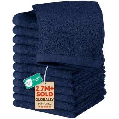 Wash Cloth Set - The pack comprises of 12 washcloths towels each measuring 12 by 12 inches. Terrific and Life Long - The towel set is weaved with 100% ring spun cotton making them attractive and convenient. Offers a Comfy Experience – The towels are fabricated to offer a luxurious feel in daily household chores, at the gym, at the spa, at the pool, or simply placed in the guest bedroom. Supple And Absorbent – The texture of the towel is soft and delicate on the skin while the composition enables it to be highly absorbent and durable. Quality Tailored Just For You – To prevent unforeseen color discoloration, it is advised, to avoid the removal of the application of any form of cosmetics, facial creams, or scrubs directly with the towel.