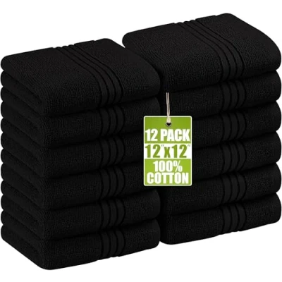 Utopia Towels 12 Pack Luxury Wash Cloths Set (30 x 30 CM) 100% Cotton Ring Spun, Highly Absorbent and Soft Feel Washcloths for Bathroom, Spa, Gym, Face Towel (Black)