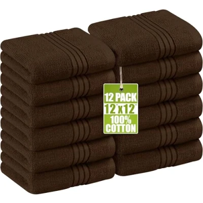 Utopia Towels 12 Pack Luxury Wash Cloths Set (30 x 30 CM) 100% Cotton Ring Spun, Highly Absorbent and Soft Feel Washcloths for Bathroom, Spa, Gym, Face Towel (Brown)