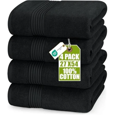 Utopia Towels 4 Pack Bath Set, (27 x 54 Inches) 100% Ring Spun Cotton, Quick Dry, Highly Absorbent, Soft Feel Towels, Perfect for Daily Use (Black)