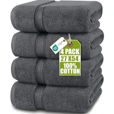 Set of 4- The set contains four 600 GSM premium bath towels measuring 27 by 54 inches each. These truly luxurious towels come in a variety of beautiful colors to complement with any home, dorm or hotel bathroom Premium Quality Construction- Woven with 100% ring spun cotton that are supremely soft and breathable while being sturdy and durable enough to withstand every day usage Versatile- The terry towel material allows for maximum absorbency making it perfect for poolside, bathroom, beach, salon, spa or gyms. The set fulfills your basic bathroom drying needs. Ideal Washing Temperature: Wash the towels at around 30 degrees to preserve them for a long time and keep them soft. Soft And Absorbent- Our 600GSM high density towels are soft, ultra-absorbent and possess fast drying characteristic. Enjoy the comfort of enveloping yourself in these bath towels, drying off your hands or face after a shower or a regular wash