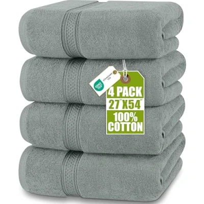 Set Of 4 - The set contains four premium bath towels measuring 69 by 137 CM each. These truly luxurious towels come in a variety of beautiful colors to complement with any home, dorm or hotel bathroom. Premium Quality Construction - Woven with 100% ring spun cotton that are supremely soft and breathable while being sturdy and durable enough to withstand every day usage. Versatile - The terry towel material allows for maximum absorbency making it perfect for poolside, bathroom, beach, salon, spa or gyms. The set fulfills your basic bathroom drying needs. Double Stitched Hemmed Finish- Each towel is finished with a double stitched hem at the border for reduced breakdown after washing while it also adds to the aesthetics of the towel. Soft And Absorbent - Our high density towels are soft, ultra-absorbent and possess fast drying characteristic. Enjoy the comfort of enveloping yourself in these bath towels, drying off your hands or face after a shower or a regular wash.