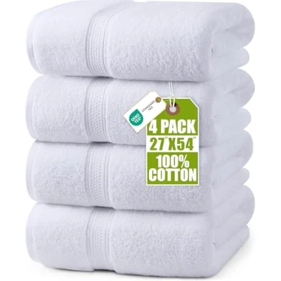 Set Of 4 - The set contains four premium bath towels measuring 69 by 137 CM each. These truly luxurious towels come in a variety of beautiful colors to complement with any home, dorm or hotel bathroom. Premium Quality Construction - Woven with 100% ring spun cotton that are supremely soft and breathable while being sturdy and durable enough to withstand every day usage. Versatile - The terry towel material allows for maximum absorbency making it perfect for poolside, bathroom, beach, salon, spa or gyms. The set fulfills your basic bathroom drying needs. Double Stitched Hemmed Finish- Each towel is finished with a double stitched hem at the border for reduced breakdown after washing while it also adds to the aesthetics of the towel. Soft And Absorbent - Our high density towels are soft, ultra-absorbent and possess fast drying characteristic. Enjoy the comfort of enveloping yourself in these bath towels, drying off your hands or face after a shower or a regular wash.