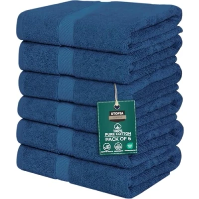 Utopia Towels 6 Pack Bath Towel Set, 100% Ring Spun Cotton (60 x 120 CM) Medium Lightweight and Highly Absorbent Quick Drying Towels, Premium for Hotel, Spa Bathroom (Navy)
