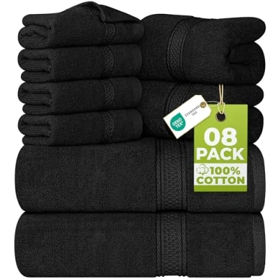 Utopia Towels 8 Piece Towel Set 2 Bath Towels, Hand and 4 Washcloths Cotton Hotel Quality Super Soft Highly Absorbent (Black)