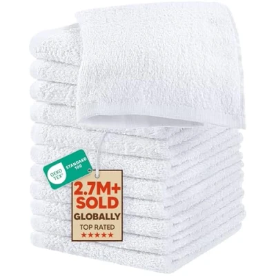 Wash Cloth Set - The pack comprises of 12 washcloths towels each measuring 12 by 12 inches. Terrific and Life Long - The towel set is weaved with 100% ring spun cotton making them attractive and convenient. Offers a Comfy Experience – The towels are fabricated to offer a luxurious feel in daily household chores, at the gym, at the spa, at the pool, or simply placed in the guest bedroom. Supple And Absorbent – The texture of the towel is soft and delicate on the skin while the composition enables it to be highly absorbent and durable. Quality Tailored Just For You – To prevent unforeseen color discoloration, it is advised, to avoid the removal of the application of any form of cosmetics, facial creams, or scrubs directly with the towel.