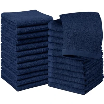 Utopia Towels Cotton Washcloths Set 30 x cm, White 100% Ring Spun Cotton, Premium Quality Flannel Face Cloths, Highly Absorbent and Soft Feel Fingertip (24 Pack, Navy)