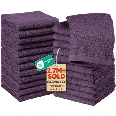 Utopia Towels Cotton Washcloths Set 30 x cm, White 100% Ring Spun Cotton, Premium Quality Flannel Face Cloths, Highly Absorbent and Soft Feel Fingertip (24 Pack, Plum)