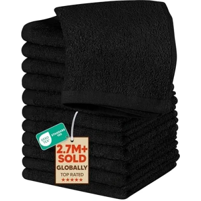 Wash Cloth Set - The pack comprises of 12 washcloths towels each measuring 12 by 12 inches. Terrific and Life Long - The towel set is weaved with 100% ring spun cotton making them attractive and convenient. Offers a Comfy Experience – The towels are fabricated to offer a luxurious feel in daily household chores, at the gym, at the spa, at the pool, or simply placed in the guest bedroom. Supple And Absorbent – The texture of the towel is soft and delicate on the skin while the composition enables it to be highly absorbent and durable. Quality Tailored Just For You – To prevent unforeseen color discoloration, it is advised, to avoid the removal of the application of any form of cosmetics, facial creams, or scrubs directly with the towel.