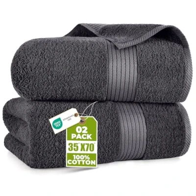 Utopia Towels Luxurious Jumbo Bath Sheet 2 Pack 100% Cotton Highly Absorbent and Quick Dry Extra Large Towel Super Soft Hotel Quality (90 x 180 cm, Grey)