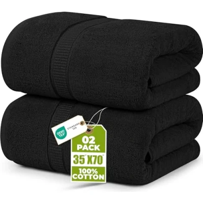 Utopia Towels Premium Jumbo Bath Sheet (90 x 180 cm, 2 Pack) 100% Ring Spun Cotton Highly Absorbent and Quick Dry Extra Large Super Soft Hotel Quality Towel (Black)