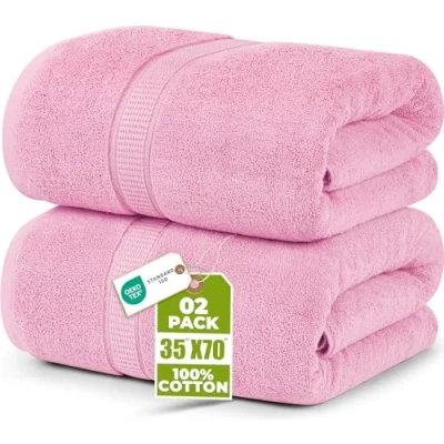 Utopia Towels Premium Jumbo Bath Sheet (90 x 180 cm, 2 Pack) 100% Ring Spun Cotton Highly Absorbent and Quick Dry Extra Large Super Soft Hotel Quality Towel (Pink)