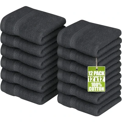 Set of 12 - Included 12 luxury cotton washcloths in measuring 30 x 30 CM each. Manufactured with 100% combed ring-spun cotton are meant to sufficiently cater to all your needs. Splendid quality– The bathroom towels are manufactured with 100% high-end ring-spun cotton to ensure reliability and durability that lasts long. Key features – Absorbent with a delicate feel; the combination makes the wash cloth set functional and luxurious. Maximum absorption with a soft comfort feels. Machine washable – The bath towel set is perfectly machine safe and can be easily washed with warm water and light soap. Dry the towels immediately. Quality tailored just for you – To prevent unforeseen color discoloration, it is advised, to avoid the removal of the application of any form of cosmetics, facial creams, or scrubs directly with the towel.