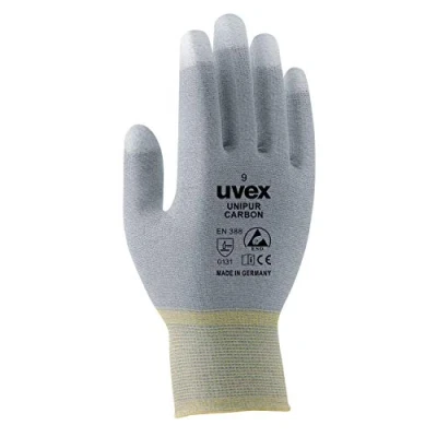 Sensitive and anti-static protective glove for precision work with electronic parts Palm with carbon micro-nubs, fingertips with thin elastomer coating Very good grip Very high breathability, excellent tactile and fingertip feel Certified according to EN 388:2016 (2 1 3 1 X) and meets the requirements of DIN EN 16350:2014, Weight: 0.04188782978 Pounds, Manufacturer: Uvex Safety Gloves GmbH & Co. KG