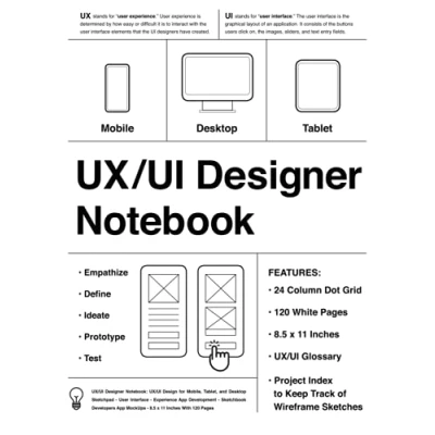 UX/UI Designer Notebook (White): Design for Mobile, Tablet, and Desktop Sketchpad User Interface Experience App Development Sketchbook ... MockUps 8.5 x 11 Inches With 120 Pages